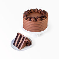Chocolate buttermilk filled with chocolate Chantilly whipped cream and frosted with chocolate buttercream. Writing color for Chantilly cream frosting will only be available in chocolate ganache.